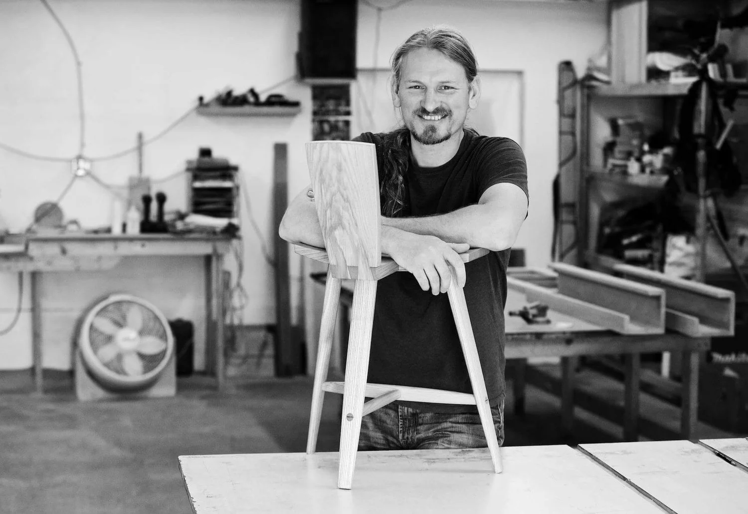 Fatie has worked with wood for almost twenty years. His passion for exploring design and collaborating with others drives him. He graduated from Haywood Community College’s Professional Craft program in Wood in 2005 under Wayne Raab. After entering a design show to reimage the Adirondack Chair, he was invited to teach a course at Indiana University of Pennsylvania and his design was included in their permanent collection. He has also taught at Warren Wilson College, including a class on shop safety incorporating his one legged stool and a class on designing and building benches. He was recognized with a Niche award in 2006 for his Tuxedo chair and is represented by Grovewood Gallery.